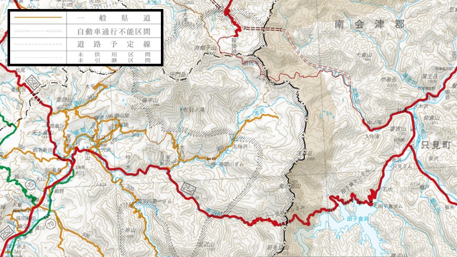 破間川・黒又川・奥只見綜合開発地域の分断県道末端部